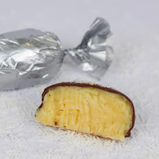 Bala de coco artesanal feita com pedaços frescos do fruto, oferecendo uma explosão de sabor doce e nostálgico a cada ... Ver completo