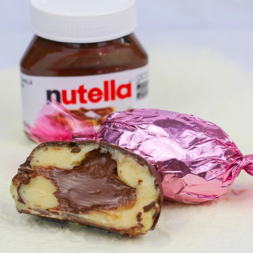 Massa amanteigada, pedacinhos de chocolate com recheio de Nutella que transborda.